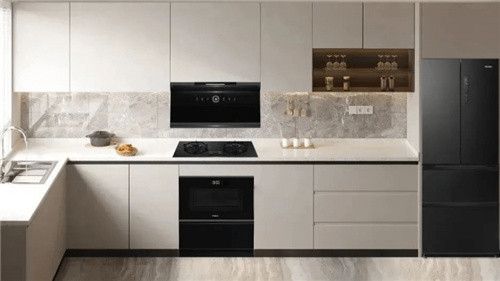 在智慧厨房,冰箱搜索食谱,无需手动调节温度时间,即可联动蒸烤箱智慧烹饪。与此同时,当用户打开燃气灶时,油烟机自动开启、风随烟动,精准排空烹饪时产生的油烟,让烹饪更尽兴,让用户更舒心。