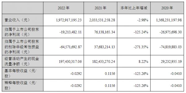由盈转亏!德尔未来2022年净利同比下降125.24%