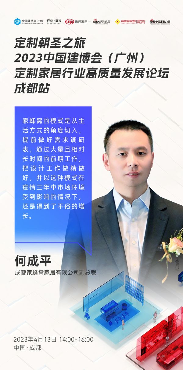 成都家蜂窝家居有限公司副总裁何成平:家蜂窝的模式是从生活方式的角度切入,提前做好需求调研表,通过大量且相对长时间的前期工作,把设计工作做精做好,并以这种模式在疫情三年中市场环境受到影响的情况下,还是得到了不俗的增长。