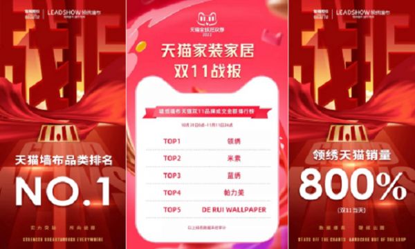 双11全周期战绩出炉|领绣墙布天猫11•11销量同比增长800%!