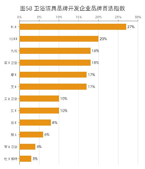 国内一线卫浴品牌成为了TOP房企卫浴洁具产品战略合作的主力军,2 0 2 3 房建供应链企业综合实力T O P 5 0 0首选供应商服务商品牌测评分析指出,在卫浴洁具类细分行业,工程市场因内资品牌在供应和性价比优势,综合放量与外资品牌实现“并跑”。 结果显示,以九牧为首的国产卫浴品牌占据了卫浴洁具榜单前十的大半席位。其中九牧以18%的品牌首选指数成为国产品牌第一。