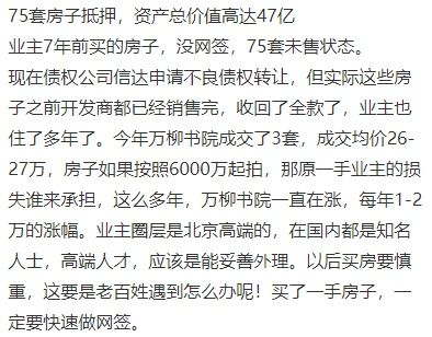 中国信达转让近47亿不良债权,知名豪宅万柳书院75套房源上架