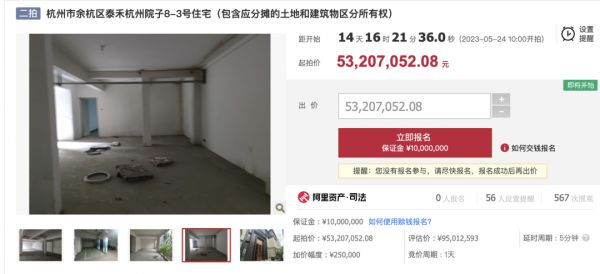 不过,从拍卖类型上看,此前成交的3套杭州院子为破产拍卖,属于杭州泰峪房地产开发有限公司旗下房产。