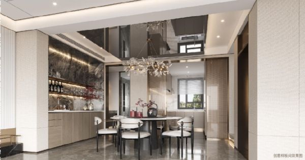 采用餐厅厨房分离设计,阔景厨房,奢适餐厅,不让烹饪时的油烟破坏享受美食的快乐。