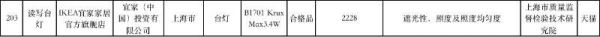 其中,标称生产单位“宜家(中国)投资有限公司”的“读写台灯”产品,规格型号为“B1701 Krux Max3.4W”抽检不合格,不合格项目为“遮光性,照度及照度均匀度”。