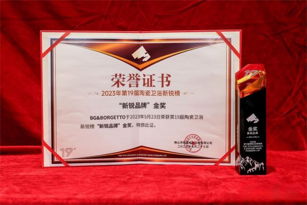 5月23日,BG葆格荟西班牙瓷砖平台旗下核心品牌——BG&BORGETTO(西班牙葆格瓷砖),从众多中国陶瓷品牌中突围而出,赢得“新锐品牌 金奖”殊荣,成为第19届陶瓷行业新锐榜颁奖盛典中最受关注的新生品牌!