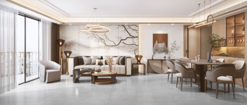 传统的客厅与餐厅有明显的边际感,总会想着用隔断将空间隔开,早已不再适应年轻人多样化的生活需求。其实将客厅与餐厅两个空间结合,做成开放式的设计,可以让整体空间更加的通透开阔。地面选用JF-F157510-002,低调沉稳的色彩纹理,让空间增添沉稳与恬静,客餐厅一体化通铺,使得空间统一感强,舒适度有一定的提高,对于小户型来说,客厅一体化能避免空间小带来的压抑感哦。