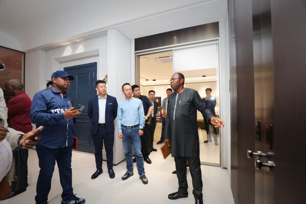5月30日,喀麦隆国民议会副议长及国民议会大厦项目跟踪委员会主席、考察组长塔图奥·迪奥多尔,国民议会副议长巴奥罗·迪欧菲尔,国民议会总务主任恩金古姆·穆萨·姆布多一行等8人考察团抵达TATA木门总部进行参观考察。
