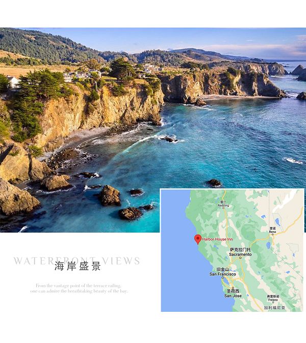 浩淼无边的大海、礁石林立的海岸线,倚靠露台栏杆可以欣赏到海湾的绝色美景,这就是属于Harbor House Inn的临海而居。