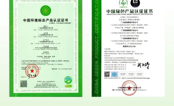 作为国内最具实力的建筑陶瓷制造商和销售商之一,能强始终以匠心谋发展,坚持创新驱动和绿色发展理念,先后荣获《中国环境标志产品认证证书》《中国绿色产品认证证书》《低碳产品认证证书》等含金量十足的绿色环保认证。