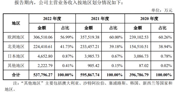 招股书显示,2020年、2021年和2022年,致欧科技的归母净利润分别约为3.80亿元、2.40亿元和2.50亿元,扣非后净利润分别约为4.59亿元、2.07亿元和2.51亿元,其中2021年下滑幅度超过五成,2022年略有回升,但远低于2020年的水平。