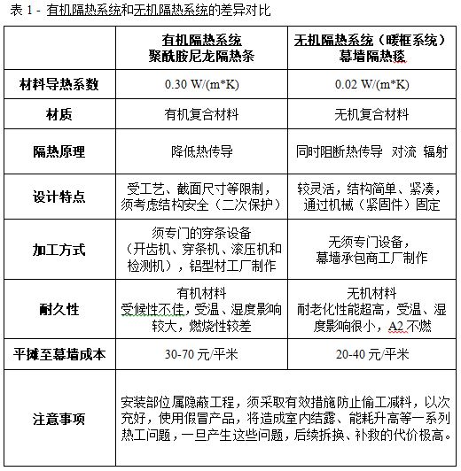 目前,有机隔热系统和无机隔热系统已经逐渐并行成为全球的两大类幕墙隔热系统。