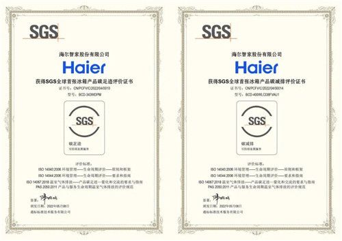 海尔智家获得SGS全球首张冰箱产品碳减排评价书
