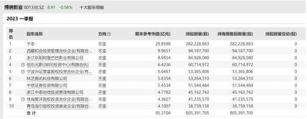 根据博纳影业2023年一季报,于冬作为博纳影业的第一大股东,其所持股份参考市值约为29.86亿元。