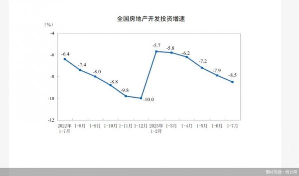 北京商报讯(记者 王寅浩)8月15日,国家统计局发2023年1—7月份全国房地产市场基本情况显示,1—7月份,全国房地产开发投资67717亿元,同比下降8.5%,这一数字在前6月为-7.9%。
