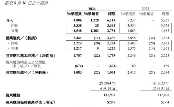 来源:恒隆地产2024年中报