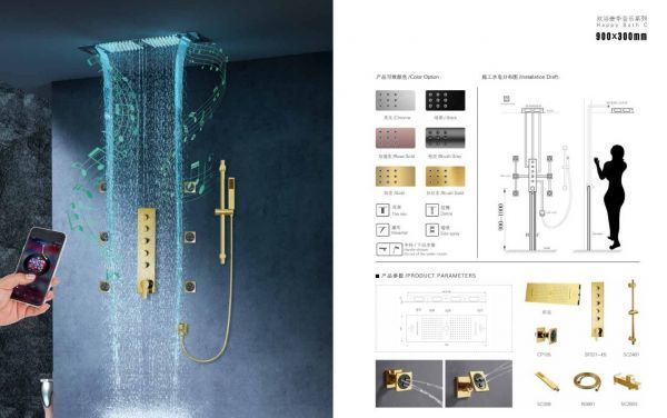 △浴旺智能情调淋浴花洒冠军品牌携欢浴900*300系列智能情调淋浴花洒别墅套装