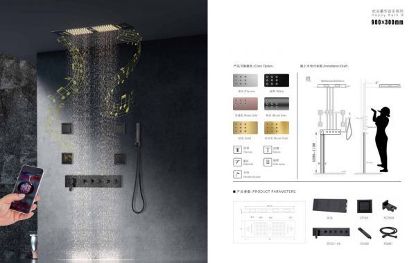 △共筑3.15满意消费 欢浴奢华音乐系列 900*300系列智能情调淋浴别墅套装