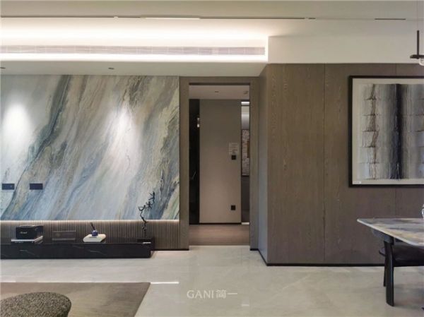 进入客厅,目光随即被整面的电视背景墙所吸引。简一碧海伽蓝的青调蓝纹自然的流淌,宛若无尽大海之上的浪花,随性洒脱。无限连纹配合密缝效果还原大自然精髓,置身其中可感受天然之美。
